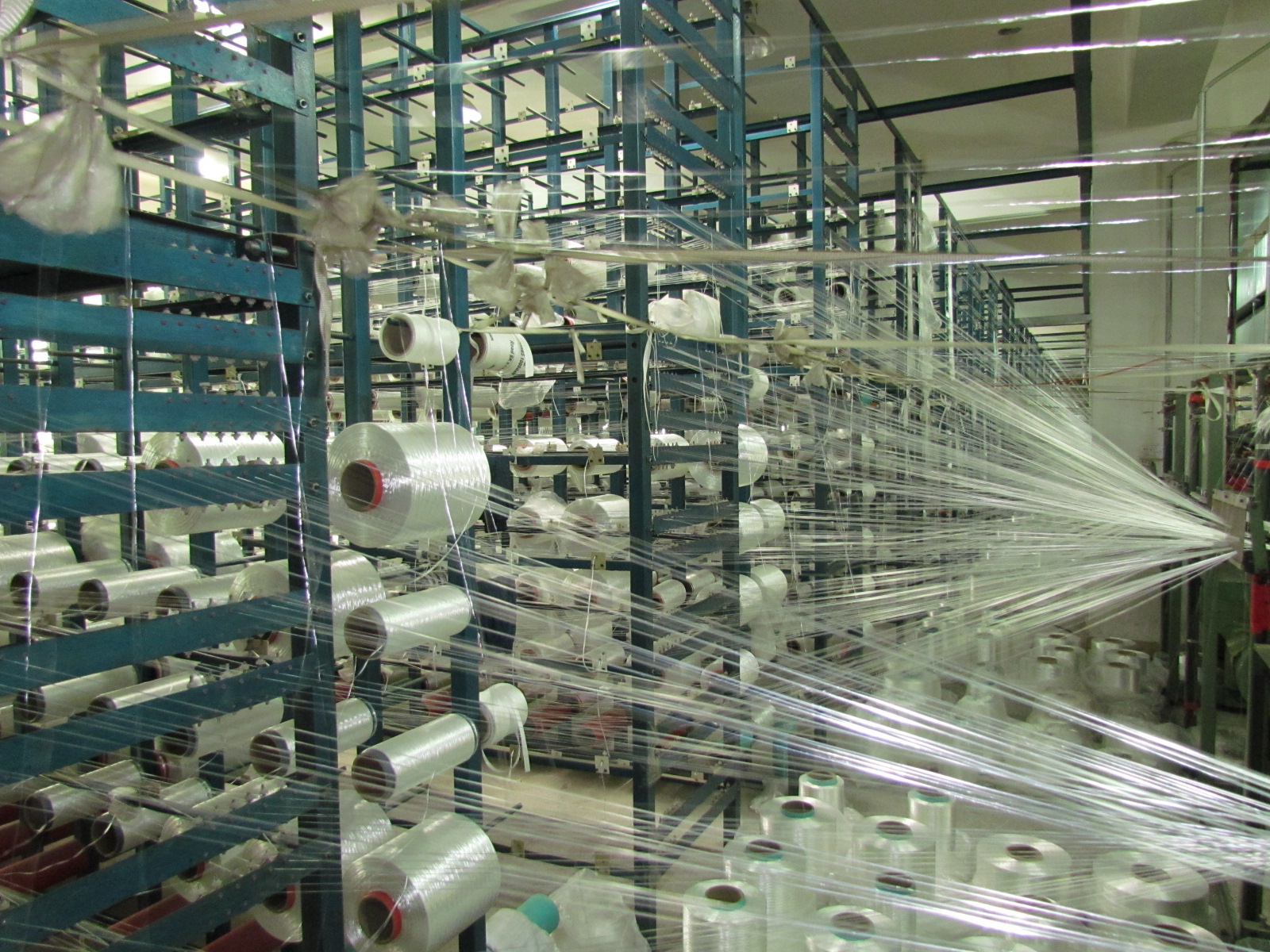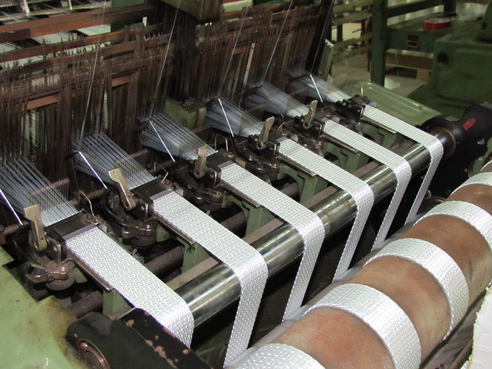 On this woven strapping belts we apply a special glue coating to make it sticky.